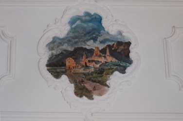 Nella stanza a seguire abbiamo anche li degli affreschi che rappresentano paesaggi rurali, i quali potrebbero essere di fantasia, perchè in quel periodo storico era usuale la riproduzione di paesaggi non realmente esistenti.