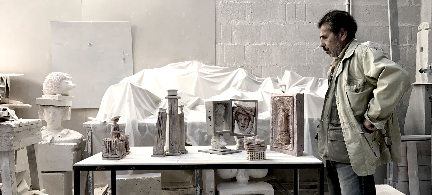 Ed infatti, sulle sculture in travertino, materiale prevalentemente usato per la realizzazione delle sue opere, si riescono a scorgere tratti di forte stabilità, tipici del sincretismo scultoreo siciliano ed ellenico: i miti narrati in chiave in chiave contemporanea non inducono a soffermarsi sull’antichità ma a sostenere che le idee vivono oltre gli uomini ed il tempo.